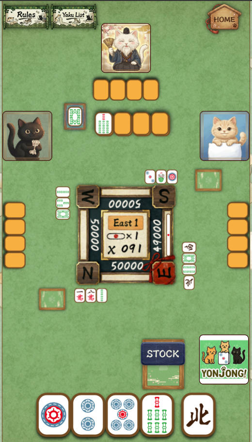 🔥 The Unique "Stock Rule" Unlike traditional Mahjong, "Yonjang!" is played with only 4 tiles in hand. But there's a twist! We introduced the "Stock System." You can keep one extra tile in your stock slot and swap it with your drawn tile at any time. This mechanic minimizes luck and maximizes strategy. Do you keep a safe tile for defense? or do you hold onto a dangerous tile for a high-scoring hand? The choice is yours!