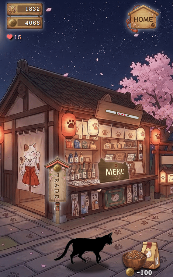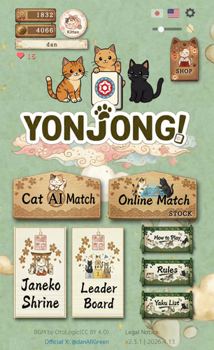 Customization & Omikuji: Spend your cat coins at the shop to draw an Omikuji (Fortune) and collect unique avatars, tile skins, and table mats to show off your style!